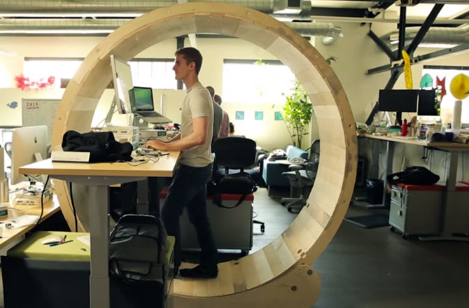 Workout while you work. One more of those why-didn’t-I-think-of-that innovations, the human hamster wheel might just set things in motion, literally, for the movement against ‘inactivity at workplace’.